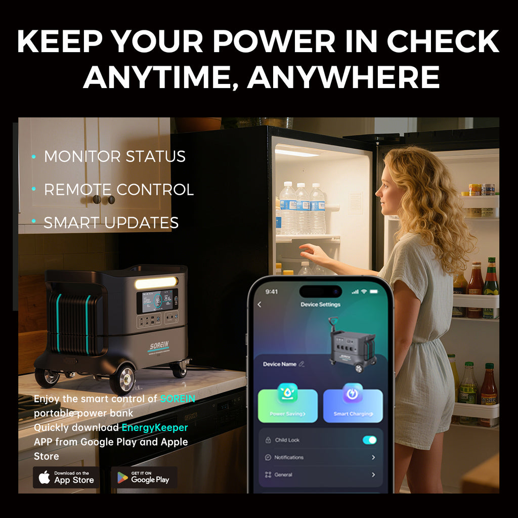 This module adds 1,037 watt-hours (Wh) of capacity. You can stack up to 2 Extra Batteries on top of it, plus your Sorein Power Station Main Unit.
